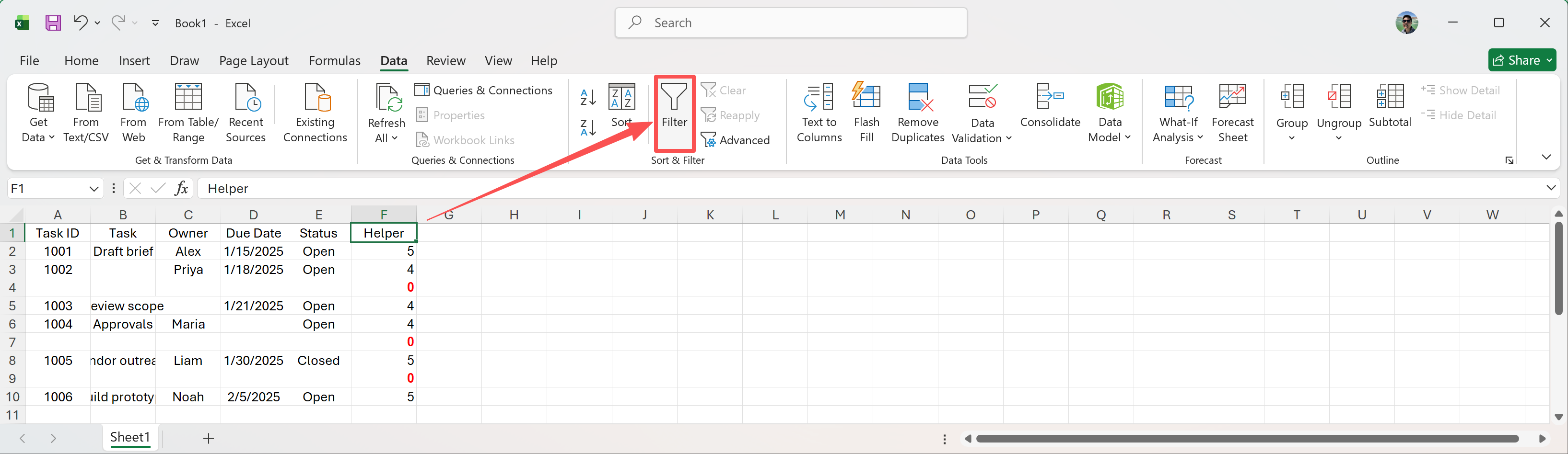 - Cleaning a task list or backlog after adding rows while a filter was on.