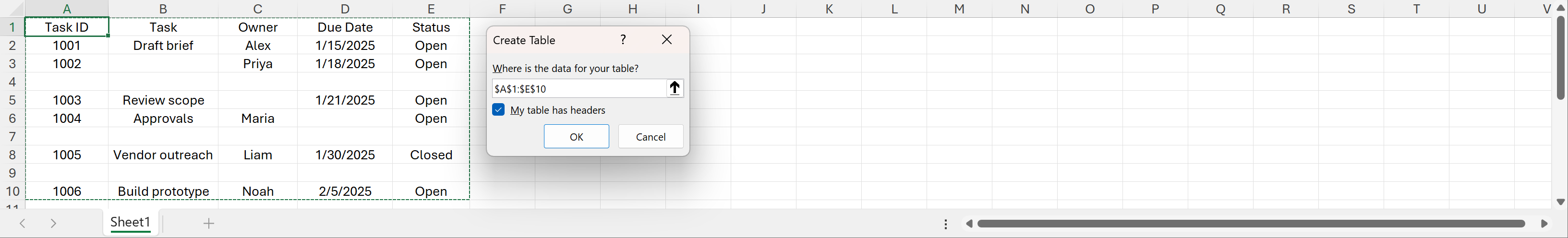 - Making PivotTables, charts, or formulas ignore gaps to avoid errors.