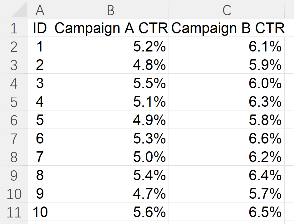 Campaign CTRs (for two-sample t-test)